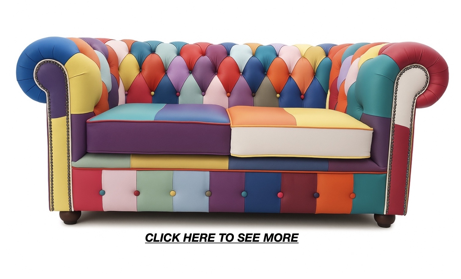 Introducing the Harlequin Patchwork Collection, A celebration of bright, vibrant, and bold design. This stunning collection transforms classic Chesterfield styling into a lively statement piece, featuring a patchwork of richly coloured panels that demand attention. Every section bursts with personality, blending playful hues and contrasting tones to create a unique visual rhythm that feels both artistic and luxurious.