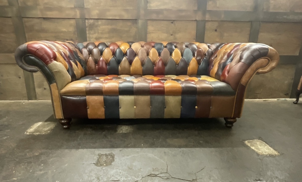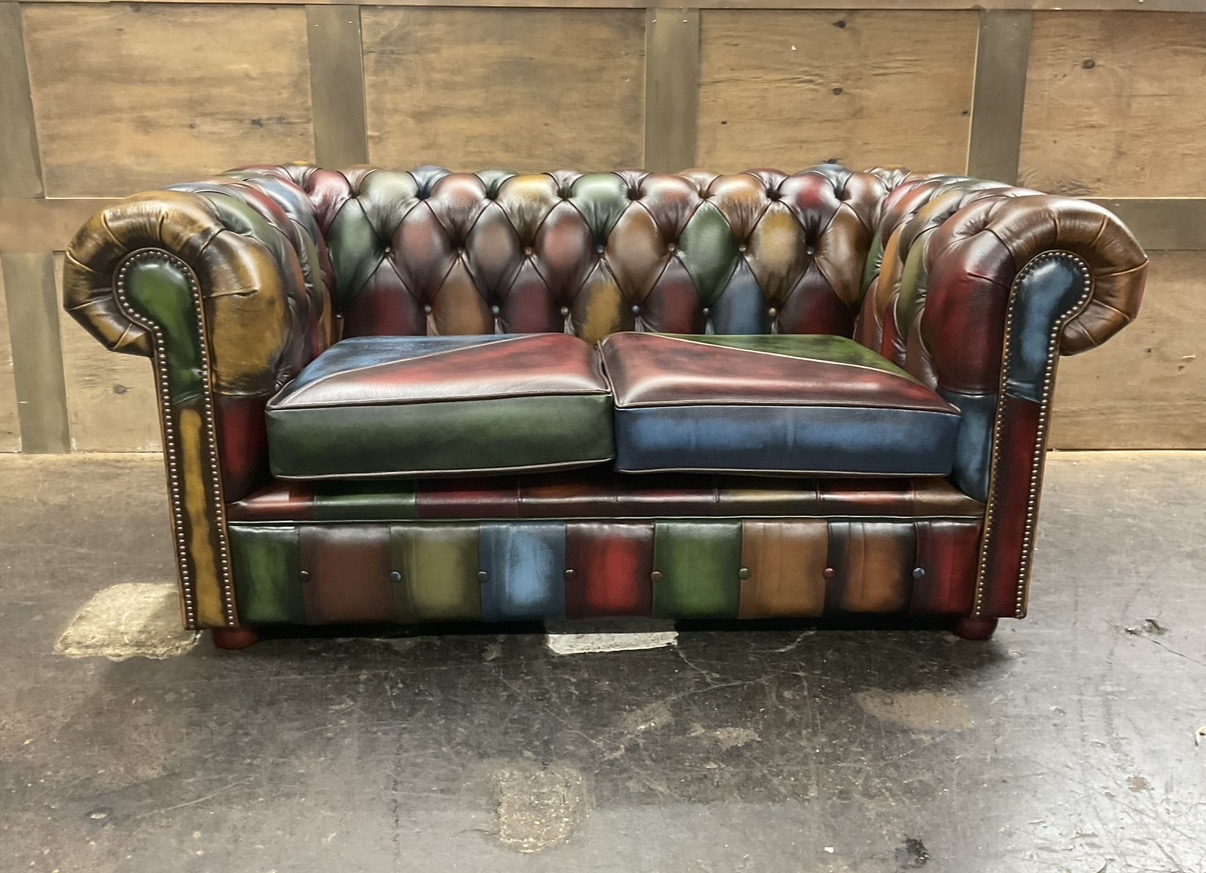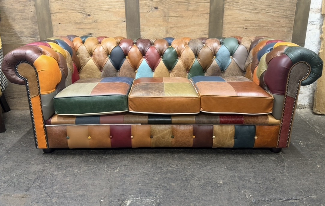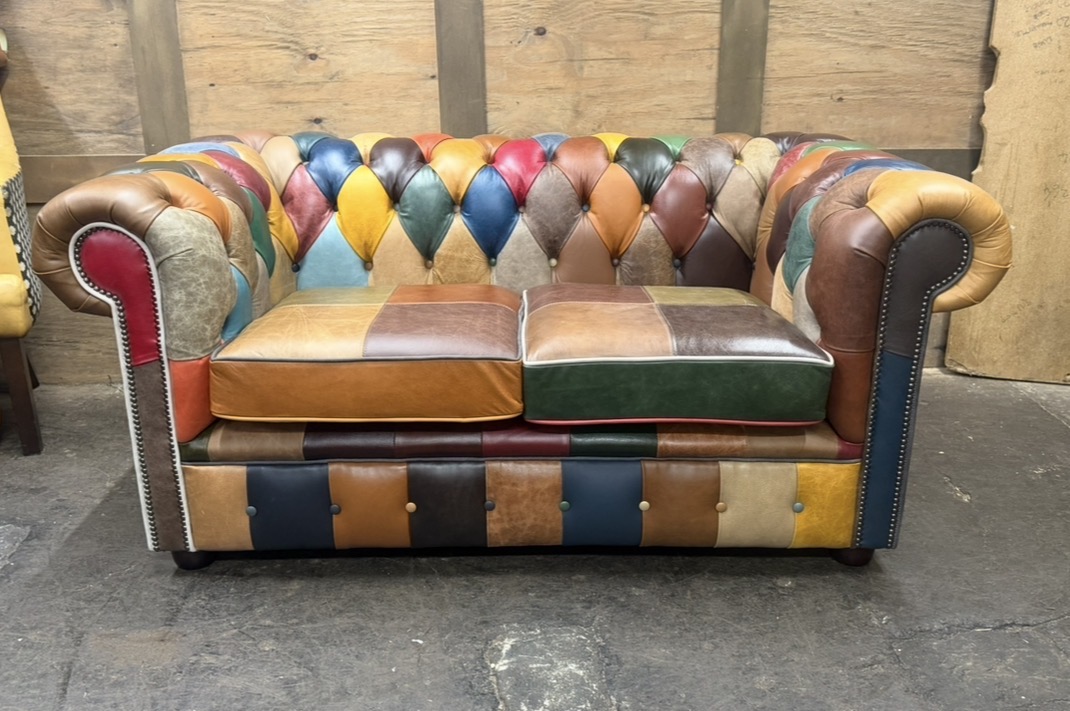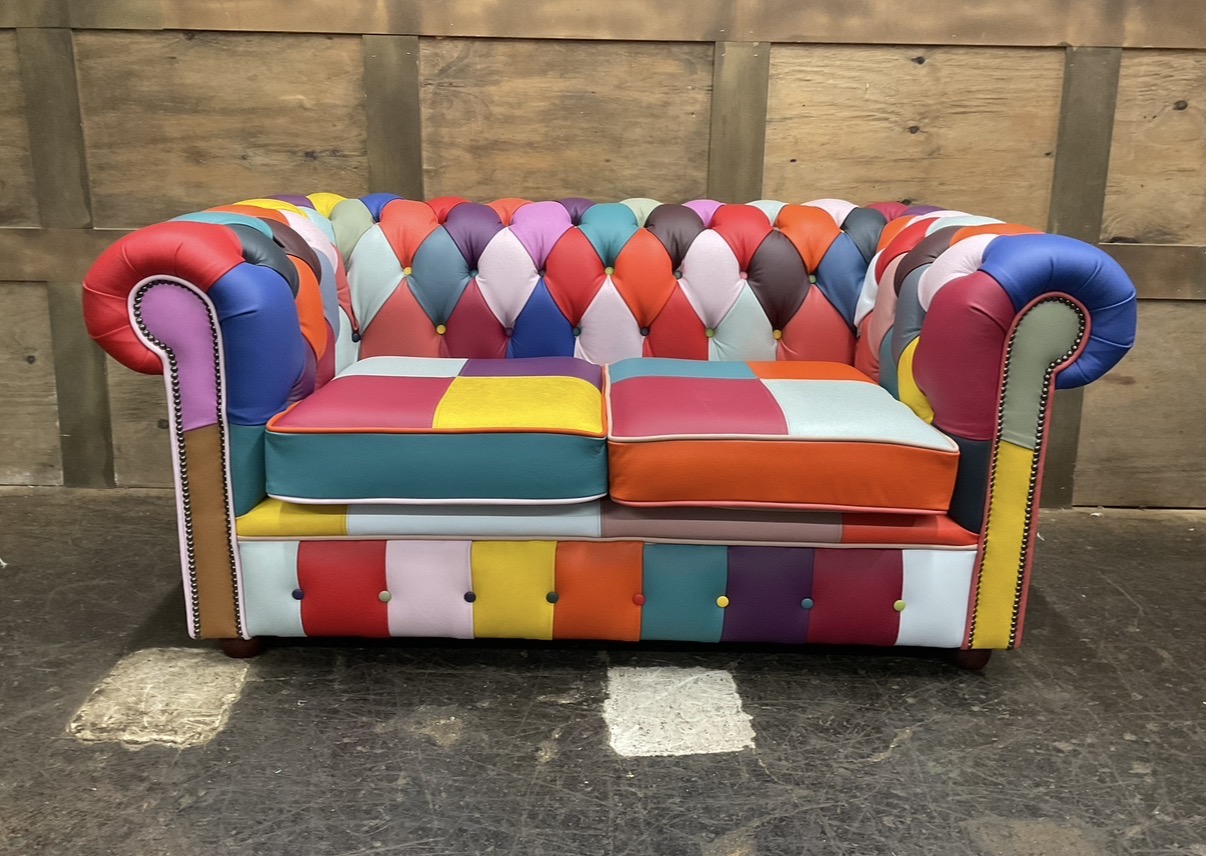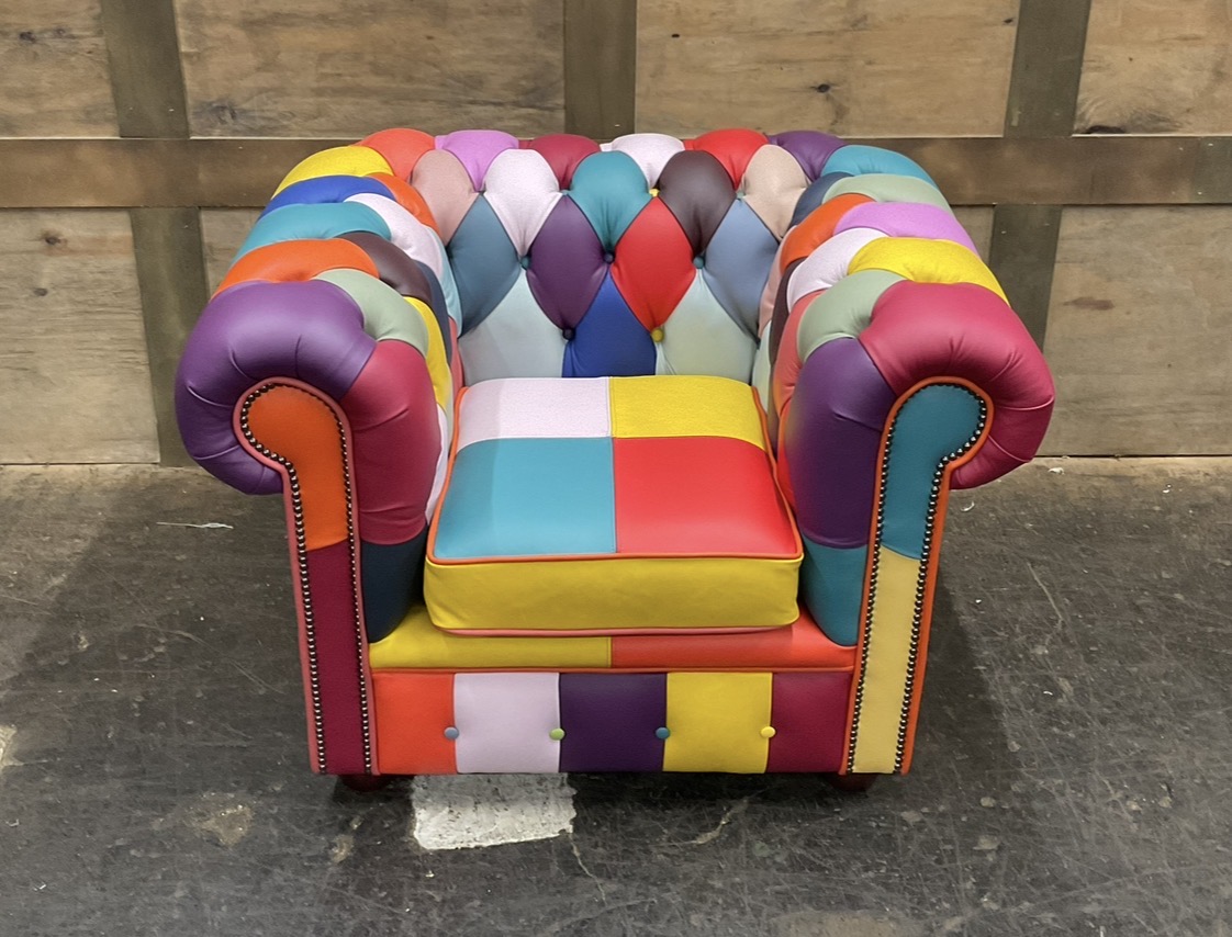 Introducing the Harlequin Patchwork Collection, A celebration of bright, vibrant, and bold design. This stunning collection transforms classic Chesterfield styling into a lively statement piece, featuring a patchwork of richly coloured panels that demand attention. Every section bursts with personality, blending playful hues and contrasting tones to create a unique visual rhythm that feels both artistic and luxurious.