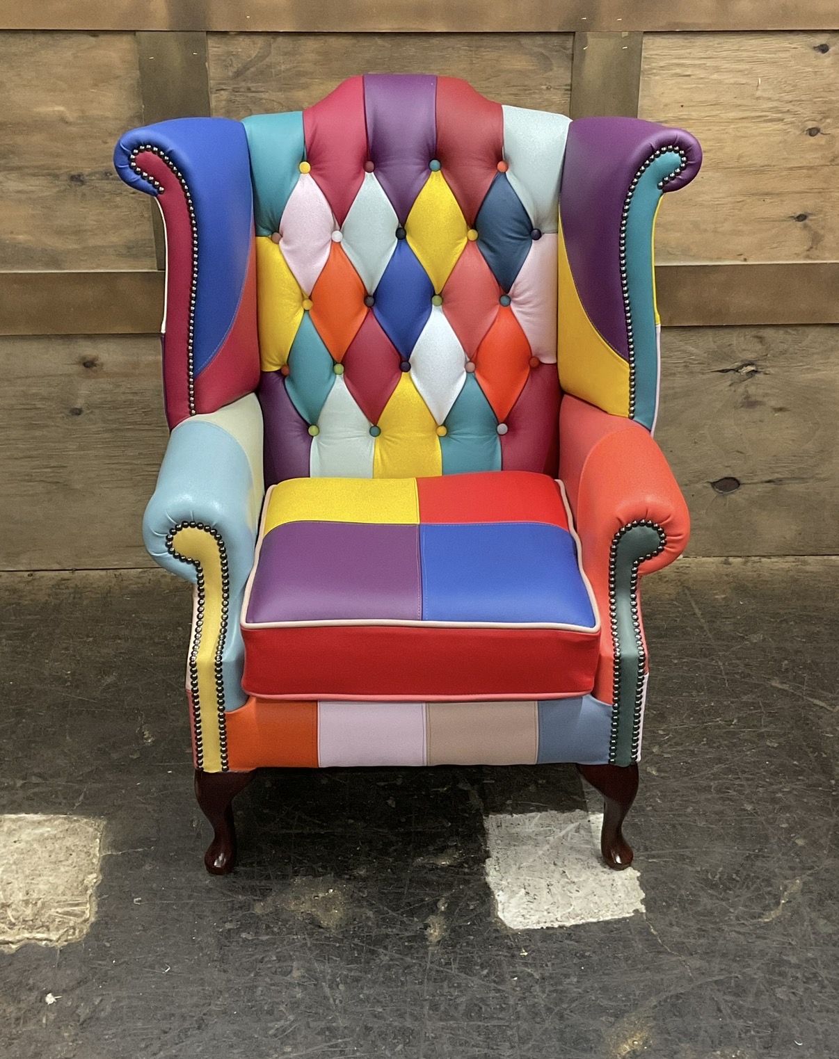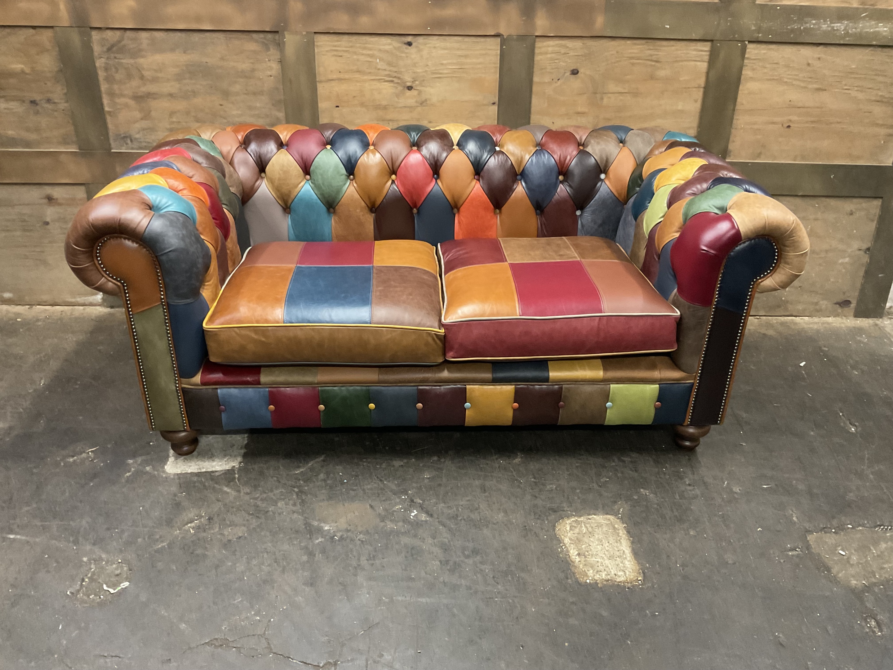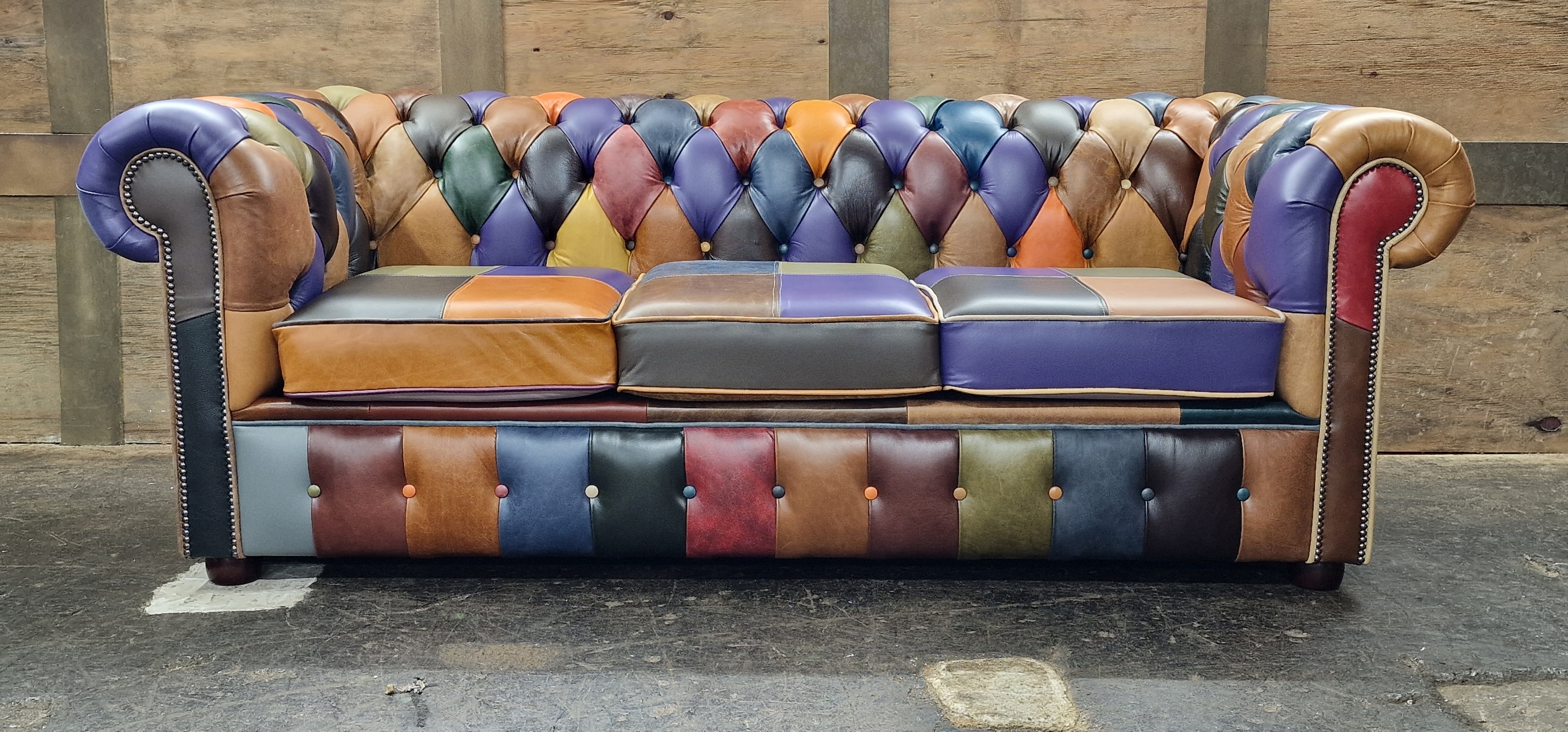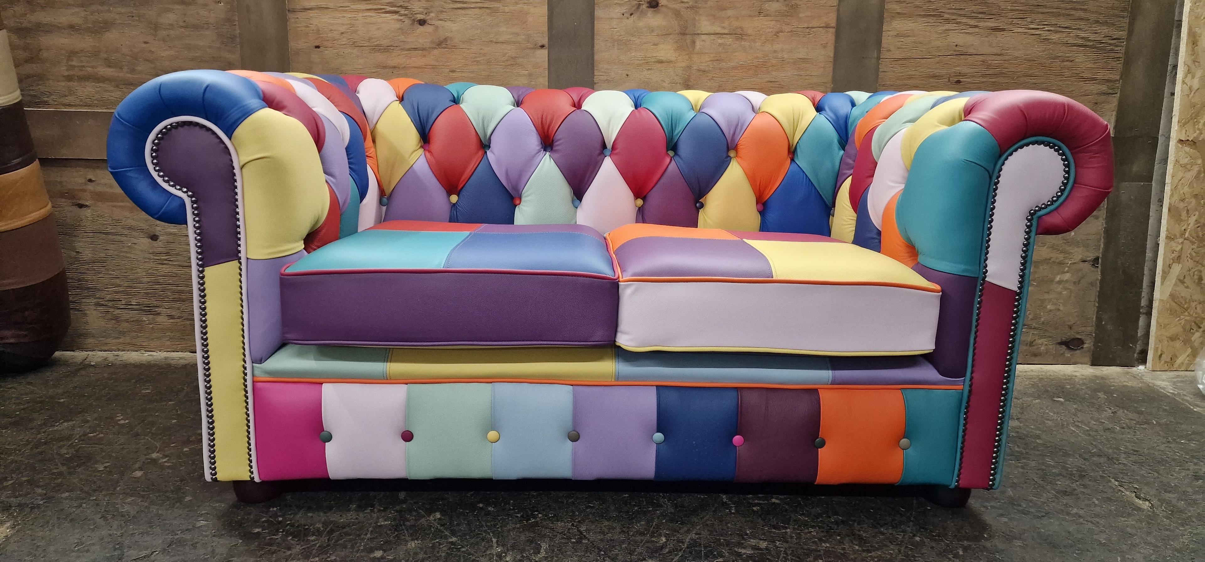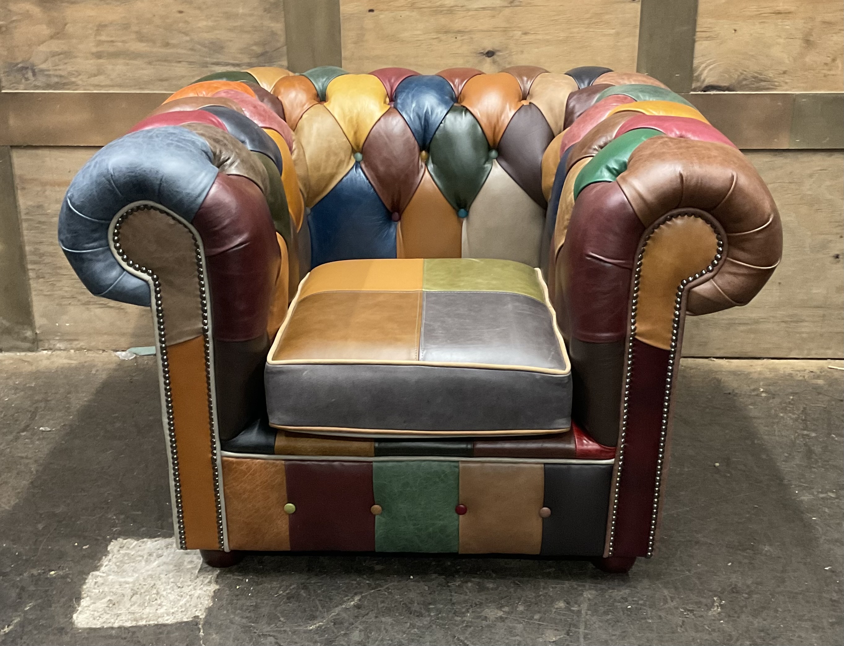 Introducing the Harlequin Patchwork Collection, A celebration of bright, vibrant, and bold design. This stunning collection transforms classic Chesterfield styling into a lively statement piece, featuring a patchwork of richly coloured panels that demand attention. Every section bursts with personality, blending playful hues and contrasting tones to create a unique visual rhythm that feels both artistic and luxurious.